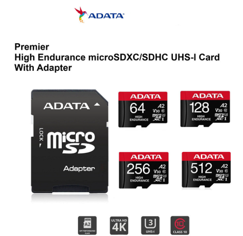 ADATA High Endurance MicroSD Card for CCTV & Car Dashcam High Speed 100/85 MB/s V30 Free Adapter