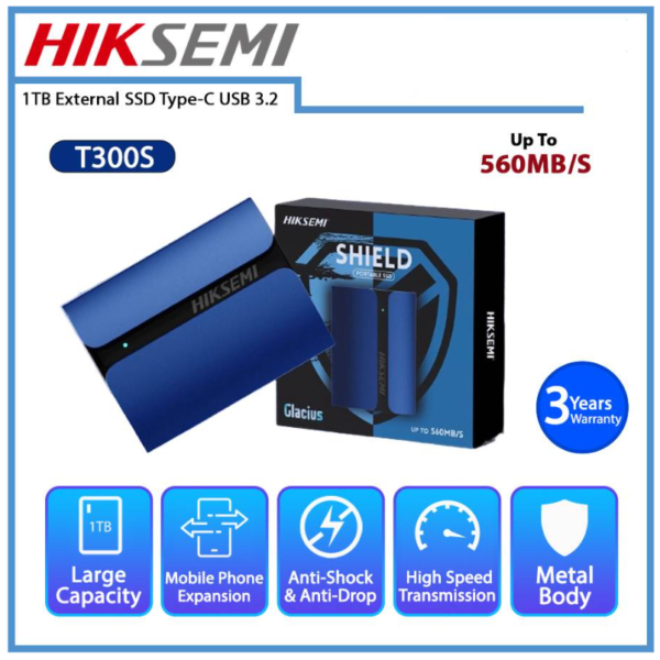 HIKSEMI T300S 1TB Incendio/Clacius USB 3.2 Type C Portable SSD + USB C to A Adapter Original price was: RM699.00.Current price is: RM659.00.